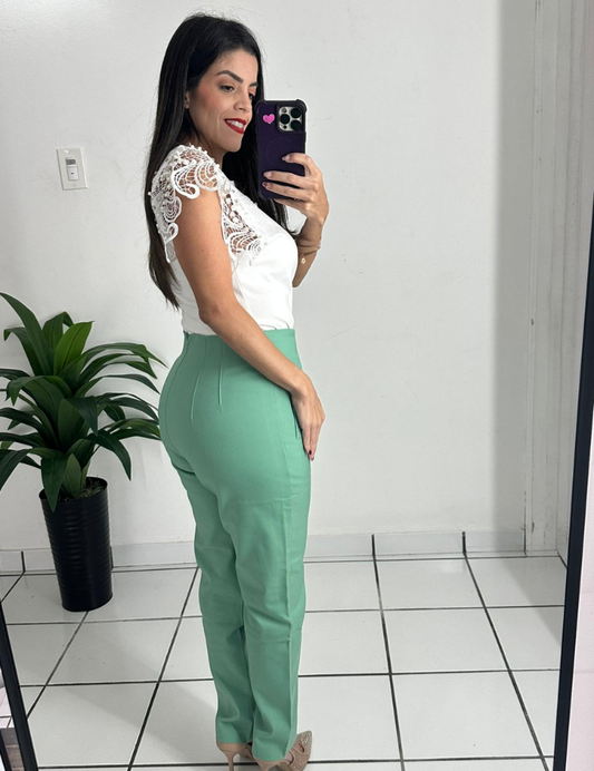 Zara style High-waisted mint green trousers pants