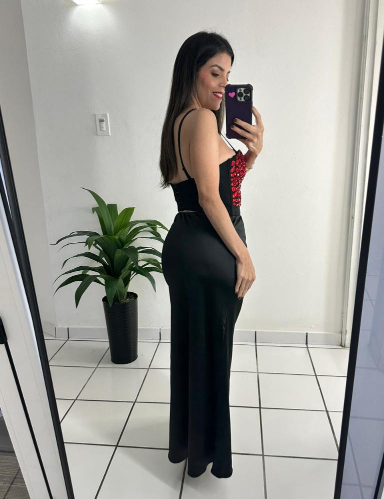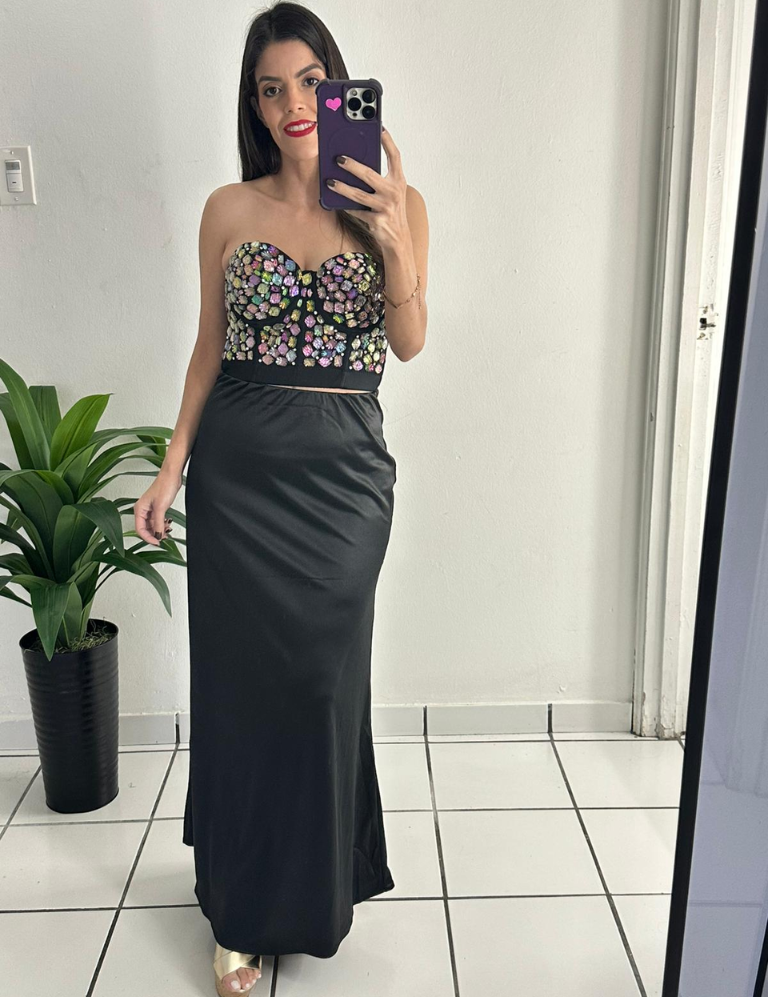 Satin A-Line Midi Skirt - Black