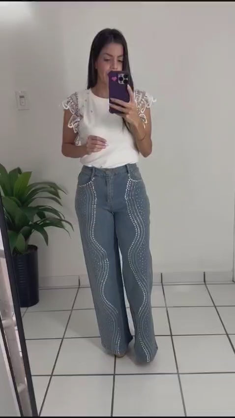 Side Rhinestone Detail Denim